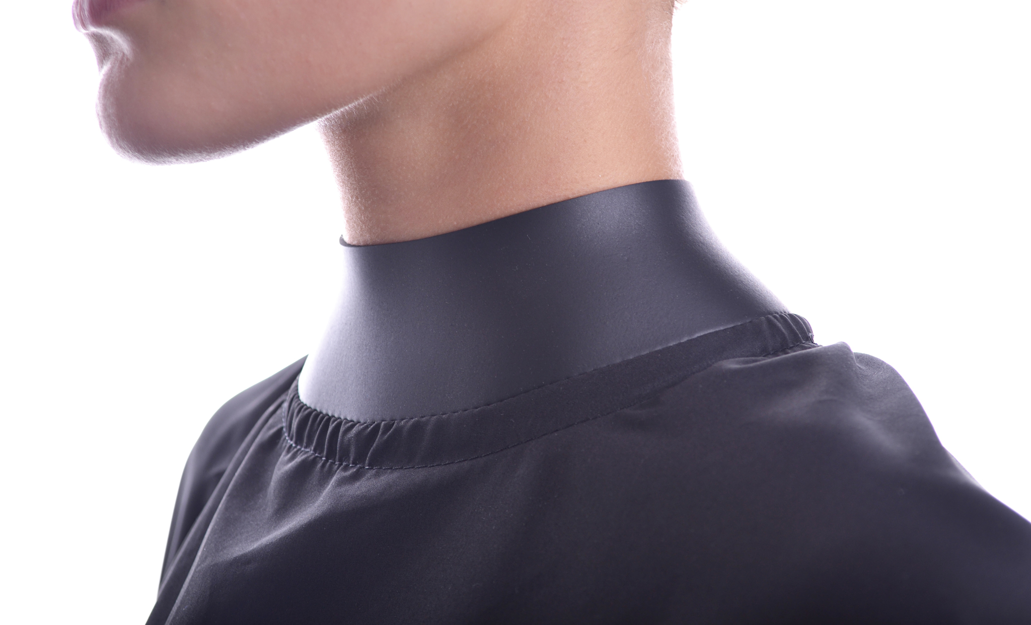 Неопреновый воротник плотно прилегает к шее.