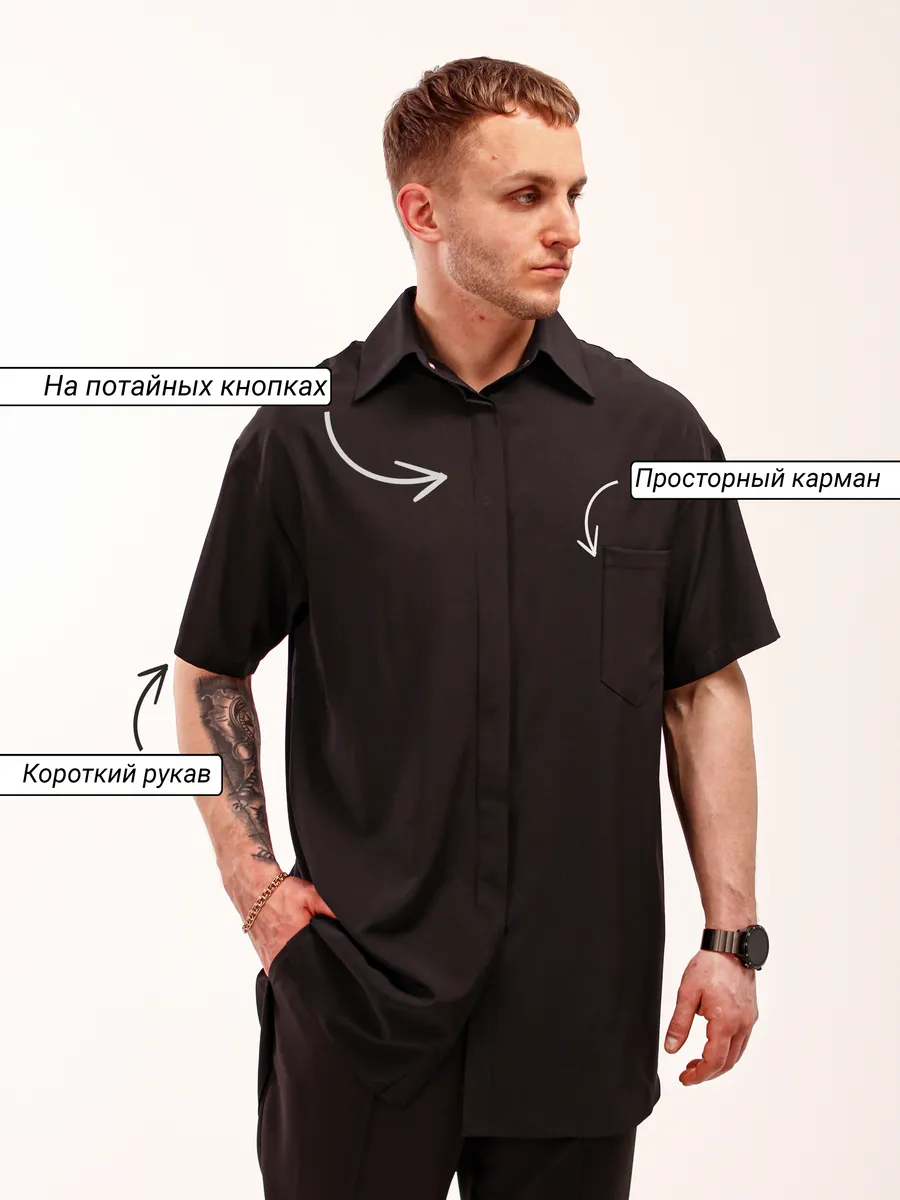 РУБАШКА IRIS от PROBLONDE - Удлиненная рубашка для парикмахеров или барберов c коротким рукавом!