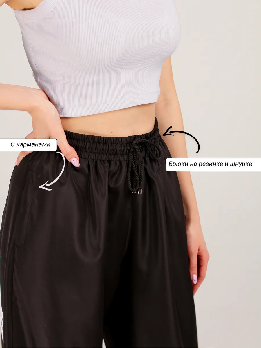 Обретите идеальный баланс комфорта и стиля! Эти спортивные штаны сочетают современный дизайн и функциональность. Модель с контрастными белыми лампасами визуально вытягивает силуэт и добавляет образу динамики.
